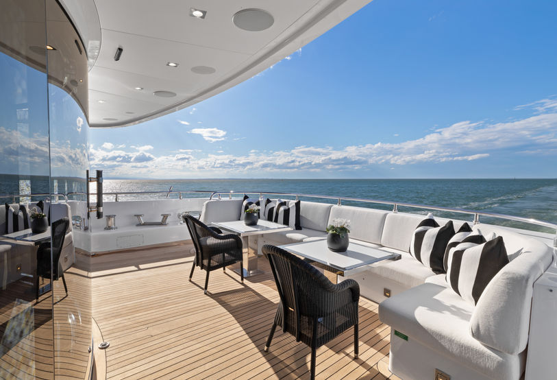 As you step onto the main deck through the beautifully designed semi-circular glass entranceway, you will enter into pure luxury. Every detail has been carefully crafted to create a world where experienced, discreet, and courteous crew members are devoted to catering to your every need and ensuring your utmost enjoyment.